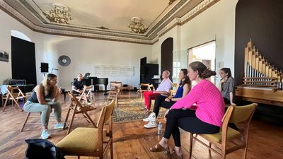 If you'd also like to know how our Workshop went: well, we did some fab concerts. 3 of them. Including Cage's 110th Birthday Party, a Fördervereinskonzert (wonderful German word) and our Final Concert of the Workshop. We also inaugurated a mindblowing sculpture called "Decay" in collaboration with the Impuls Festival, and enjoyed a luxury lunch with the Cage Förderverein. And had tea time with Petra's incredible cakes at the Stephanus Café. And then there were of course all those lessons, coachings, lessons, coachings, lessons, c... (you got the point). Physical Training with Yeri, Voice Physicality and Stage Tech Knowledge with Gunnar, Cage Intro Lecture and Imrov with Christoph, Piano Coachings with Hyerim and all other voice stuff with Sarah.... All in all we were never too bored and even had some fun. Feel free to apply for 2023